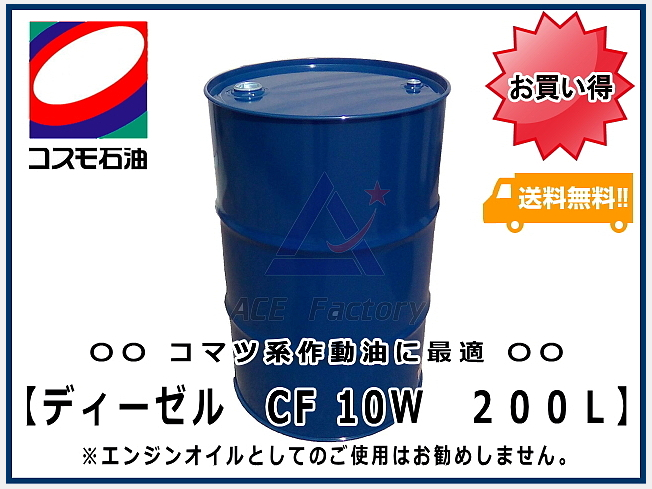 作動油 AW32 200L缶 ドラム缶 コスモ ハイドロリックオイル 【年内発送は12/23 AM9時まで、年明け発送は1/9~】コマツ建機系作動油 CF10W 200L缶 ドラム缶 ★ディーゼル用エンジンオイルですが コマツ建機系の作動油としてご利用ください 【年内発送は12/23 AM9時まで、年明け発送は1/9~】
