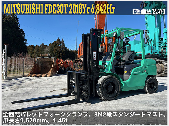 MITSUBISHI FDE30T 【整備塗装済】全回転パレットフォーククランプ、3M2段STD
