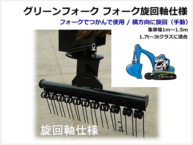 グリーンフォーク GF1500HS / GF-1500-HS フォーク(はさみ)アダプター旋回軸 仕様 集草幅 1500mm 2t~3tクラス用 集草機 フォークで掴んで使用 ★受注生産納期1.5か月~