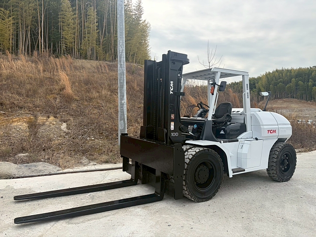 TCM FD100-4 2段マスト フォークシフト ロングフォーク 最大揚高3m
