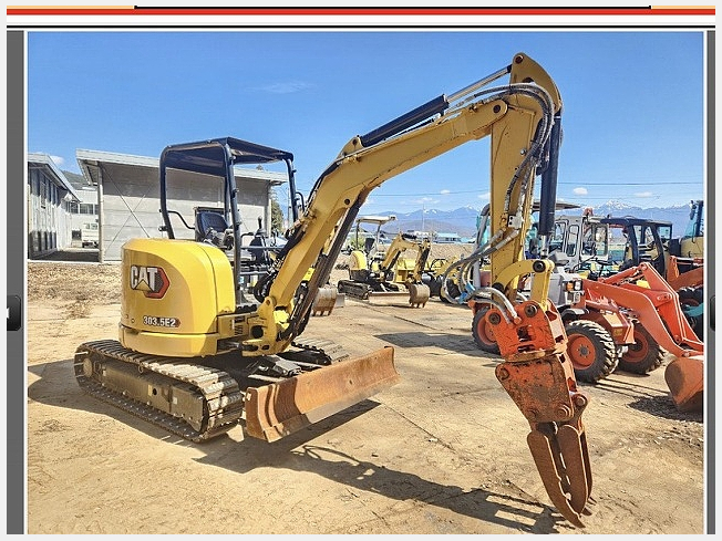 キャタピラー 303.5E2 CR 旋回フォーク付き ブレード付き